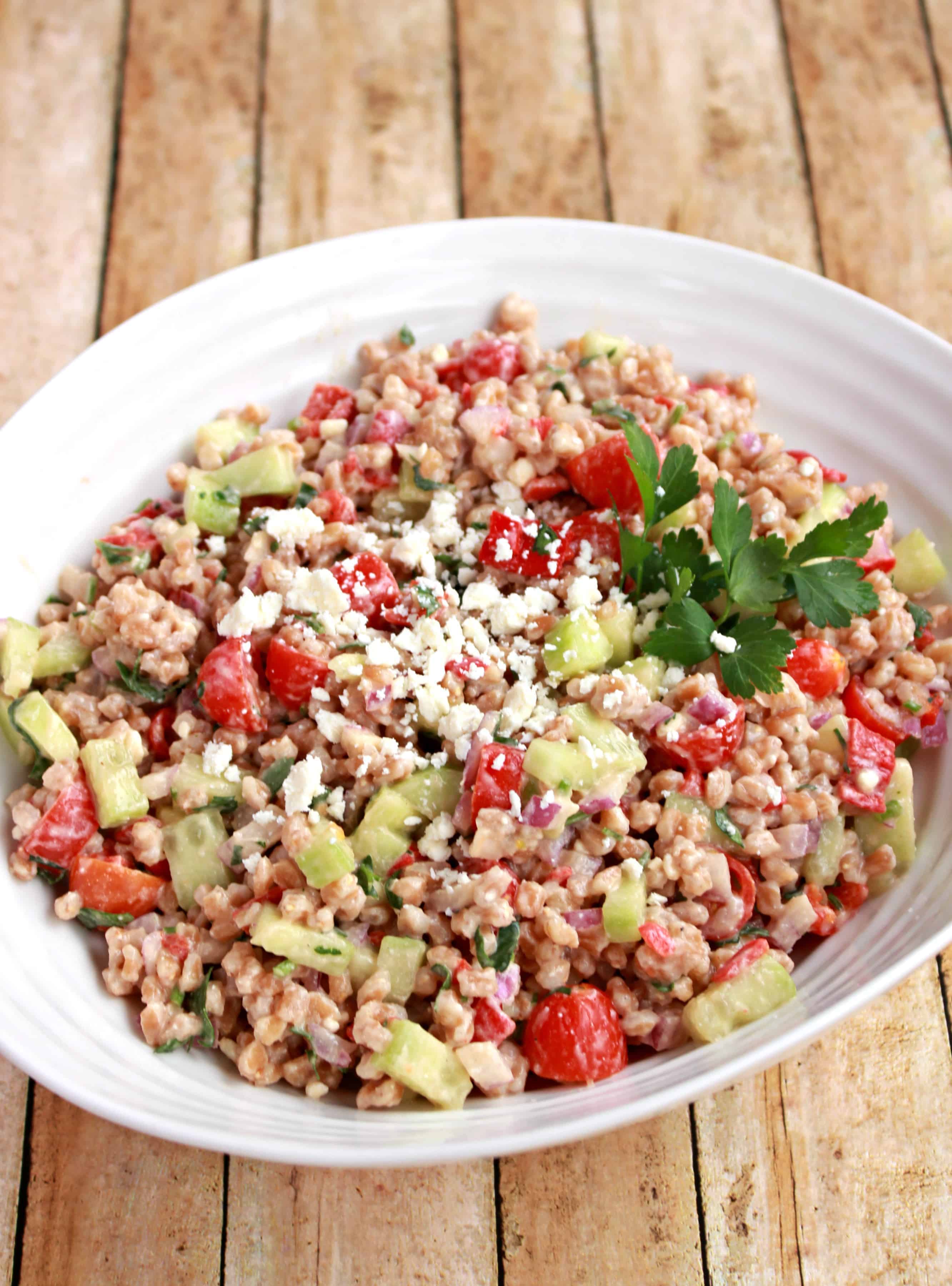- We can skip the feta cheese to make this Farro salad Vegan .